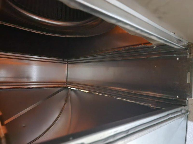 Responded to callback for loud noise complaint during system operation. Upon inspection, examined interior ductwork and HVAC components, documenting metal panels and structural elements showing signs of heat exposure and operational wear. System assessed for noise source and mechanical integrity.
