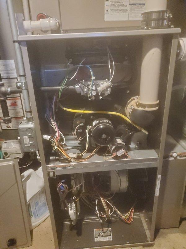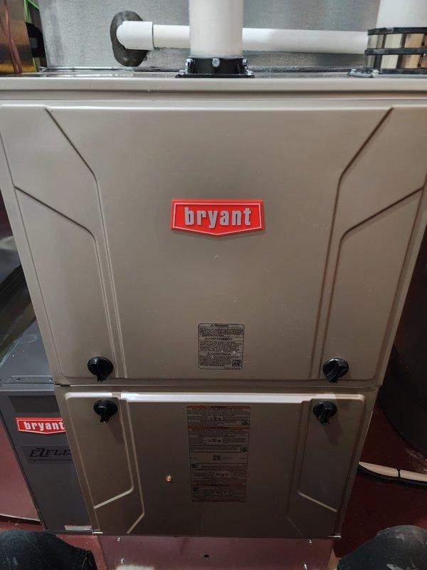 Performed scheduled maintenance on Bryant two-stage furnace system. Inspected heat exchanger, cleaned flame sensor and burners, tested ignition sequence, and verified proper venting through PVC flue pipes. All system components functioning within manufacturer specifications; recommended continued annual maintenance to preserve efficiency and extend equipment life.