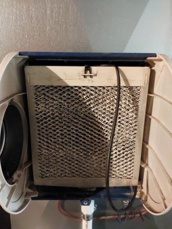 Diagnosed and serviced low humidity sensor issue on a newly installed humidifier unit. Inspected internal components including mesh filter element and electrical connections. System remains operational; service performed under warranty.