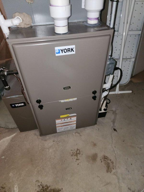 Performed routine maintenance on a York furnace system as part of the Worry Free Service Agreement. Conducted standard first-year maintenance procedures on the unit, which appears to be properly installed with appropriate venting and connections. All safety systems were checked and verified operational.
