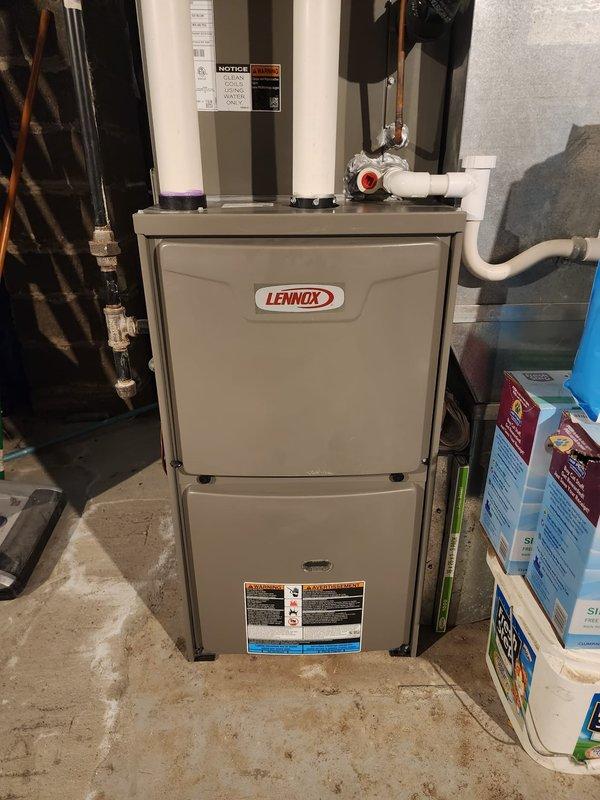 Completed scheduled maintenance on Lennox furnace system. Performed comprehensive inspection of burners, heat exchanger, and control board components. Cleaned and serviced unit, verified proper venting through PVC intake/exhaust pipes, and confirmed normal operation with all safety systems functioning correctly.