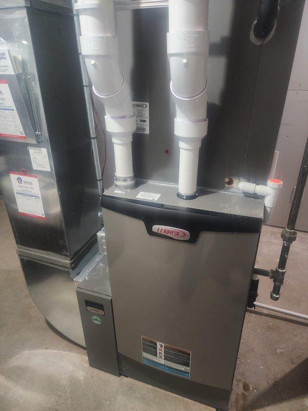 Successfully installed new Lennox furnace with proper ventilation and drainage systems, including PVC exhaust/intake piping and condensate pump. Relocated existing thermostat and integrated the system with the customer's Carrier humidifier unit for optimal home comfort.