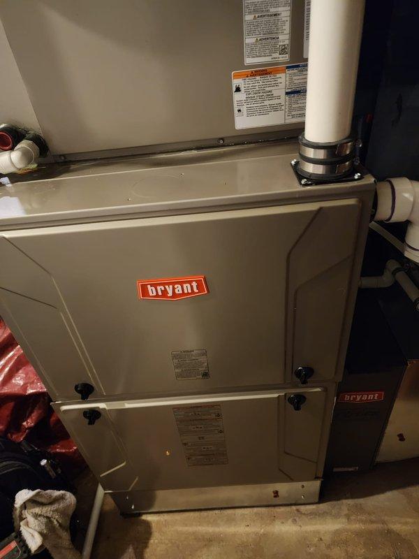 Performed routine maintenance on 4-year-old Bryant furnace system located in basement. Inspected all components and connections, cleaned system, and verified proper operation. Unit is functioning correctly with no issues identified; all safety systems operational.