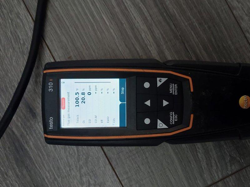 Performed scheduled maintenance on furnace as part of Worry Free Service Agreement. Conducted combustion analysis using Testo 310 analyzer, verifying proper fuel-to-air ratio with readings of 100.5% and 20.8% recorded. System is operating within manufacturer specifications.