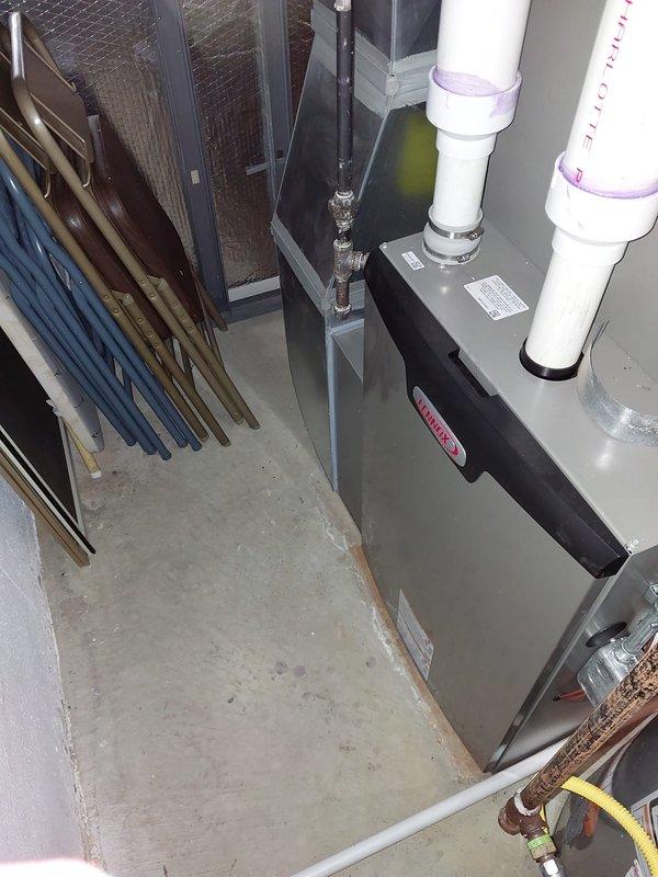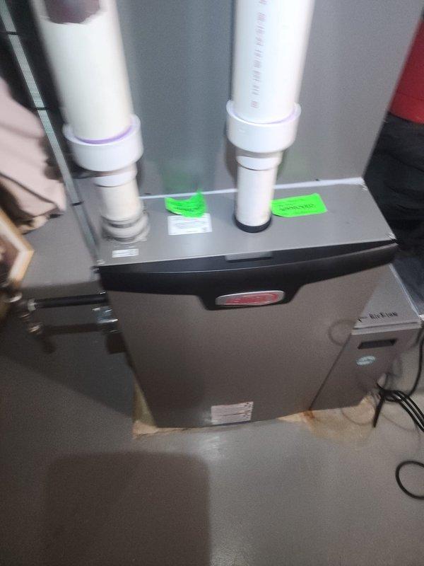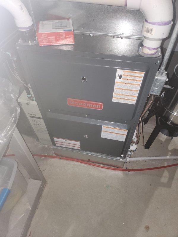 Performed scheduled maintenance on Goodman furnace per Worry Free Service Agreement. Inspected unit for proper operation, examined ductwork connections and venting system including PVC exhaust components. Verified electrical connections with attention to visible wiring. All systems functioning normally with no issues detected.