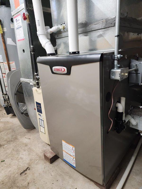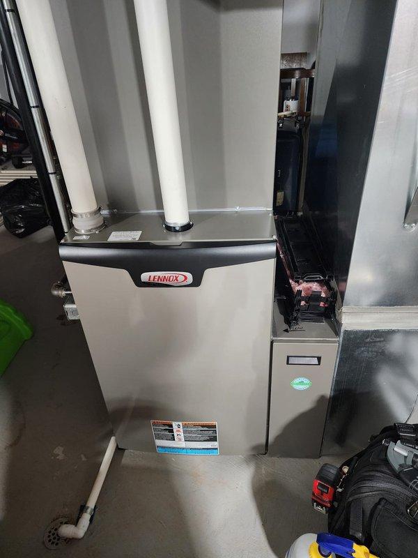 Performed routine maintenance on Lennox furnace as part of FRN maintenance schedule. Inspected all system components including heat exchanger, burners, flue piping, and ductwork connections. System is operating within normal parameters with no issues detected.