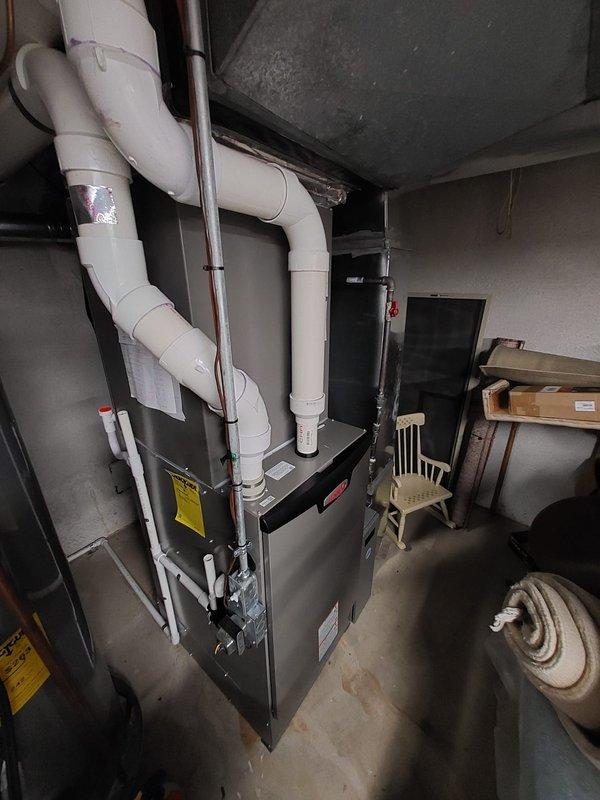 Completed routine maintenance service on residential furnace system per prepaid maintenance agreement. Inspected gas furnace, PVC venting system, and associated ductwork; all components found to be in proper working condition with connections secure. System is operating within normal parameters and ready for heating season.
