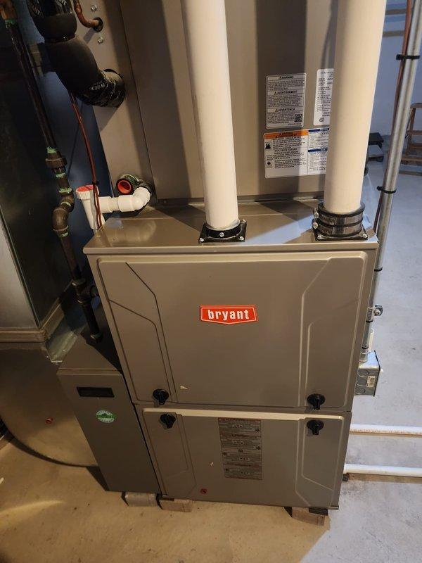Performed annual maintenance service on Bryant furnace system under Worry Free Service Agreement. Unit was thoroughly inspected, cleaned, and tested with all connections and venting components verified to be in proper working order. System is in well-maintained condition with no issues detected.