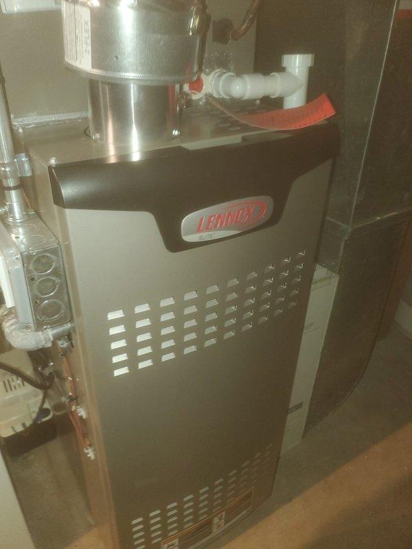 # HVAC Maintenance - Worry Free Service Agreement - Heating Completed comprehensive heating system tune-up and maintenance on Lennox furnace unit as part of owed service agreement visit. Performed full system inspection, verified proper operation of all heating components, cleaned burner assembly, checked gas connections and combustion efficiency, tested safety controls and limit switches, inspected heat exchanger for cracks or deterioration, verified proper venting and condensate drainage through PVC piping system, checked and adjusted blower motor operation, replaced air filter, inspected electrical connections and control board functionality, tested thermostat communication and cycling, confirmed adequate airflow throughout system, and documented equipment condition with photographs. All components found operating within manufacturer specifications with no immediate service needs identified. System returned to normal heating operation with recommendations provided for continued rel