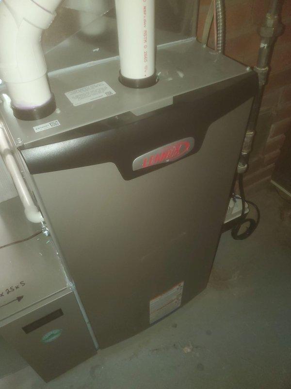 Performed scheduled maintenance on Lennox furnace system with dual PVC ventilation. Inspected main unit and companion system, examined all connection points, and verified proper ventilation setup. All components functioning correctly with no issues identified.
