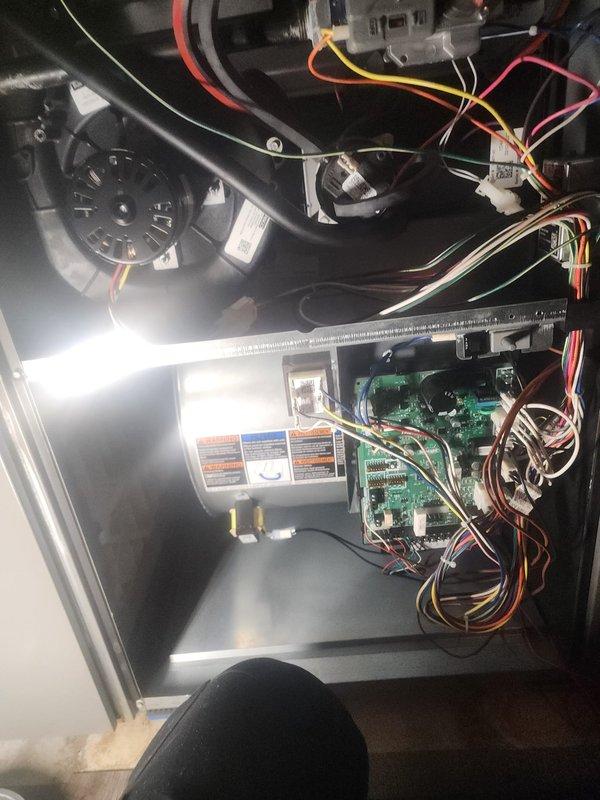 Performed scheduled furnace maintenance service between 3-5 PM. Accessed and inspected interior components including circuit board, blower assembly, and electrical connections. All wiring connections were verified and system was tested for proper operation according to manufacturer specifications.