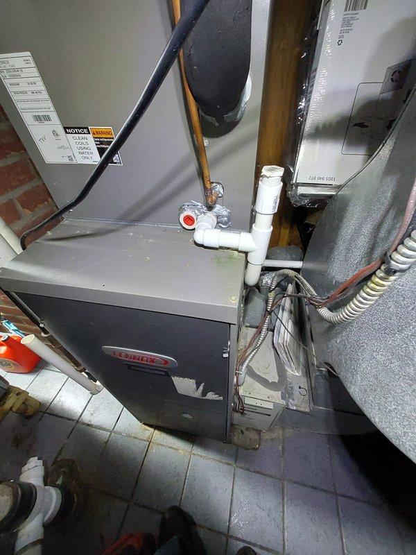Completed scheduled maintenance on Lennox furnace system per Worry Free Service Agreement. Inspected unit, connections, and condensate drainage system; all components found in good working condition with proper electrical and plumbing connections intact. Performed standard heating system maintenance to ensure optimal operation for the heating season.