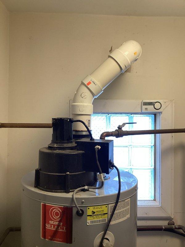 Completed assessment of "Star Select" water heater system for quote #03681-01. Evaluated current installation including tank condition, copper piping connections, shut-off valve functionality, and PVC venting system. Photos documented existing setup to provide accurate replacement options and installation requirements.
